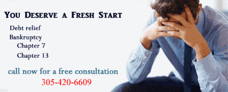 When financial circumstances become overwhelming, bankruptcy may be an option to regain control of your life. While it should be a last resort, bankruptcy can be the first step to recovery. If you are experiencing financial troubles or are in danger of imminent foreclosure, garnishment of your wages, or facing debts that you can't meet, call us for an initial consultation. As a debt relief agency, we can help you determine whether bankruptcy is the best option for you and will help you get back on the road to financial freedom. To schedule your free consultation, please call us at 305-420-6609.